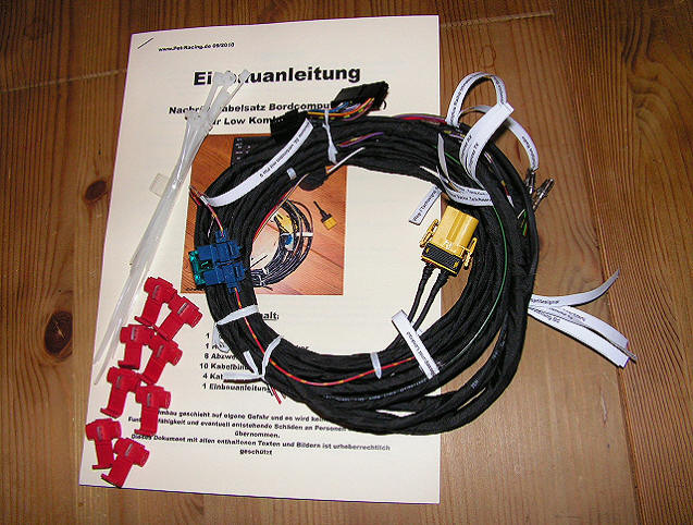 Der Nachrüstkabelbaum (als Version für Low oder für High Kombiinstrument) war für die gebeutelten Kuckucksuhrinhaber gedacht die gerne einen BC nachrüsten wollten aber leider mit nur 3 Kabeln gestraft waren - Der gefürchtete Austausch des Armaturenbrettkabelbaums oder das nachziehen einzelner Kabel und der damit verbundenen Verwechselungsgefahr gehörte damit der Vergangenheit an. Daher war der Einbau auch für ungeübte sehr einfach da alle Kabel/Stecker des BC-Kabelnachrüstung beschriftet und eine bebilderte Einbauanleitung dabei war.