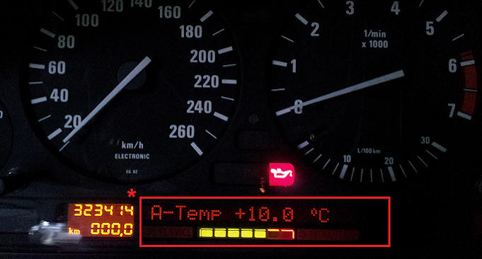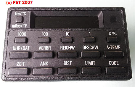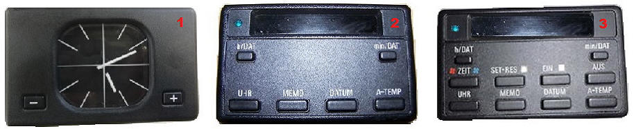 Sie besitzt jedoch nur die Funktionen Uhr, Datum, Außentemperatur incl. Glatteiswarnung über den Gong im Fahrerfußraum bei / unter 3 Grad sowie eine Memo Funktion die kurz vor Erreichen der vollen Stunde den Fahrer daran erinnern soll sein Radio für die Verkehrshinweise in Betrieb zu nehmen. Die eingeschaltete Memo-Funktion wird durch ein Schallwellen-Symbol in der rechten oberen Ecke angezeigt.