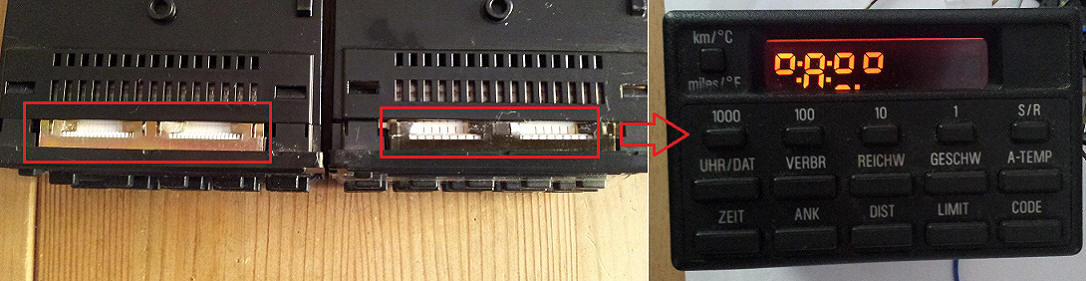 Ein Displaytausch ist möglich jedoch sollte man etwas Grundlegendes beachten da sonst die Anzeige nach dem Umbau nur noch wirre Zeichen anzeigt. Es gibt zwei unterschiedliche Varianten der BC-Anzeige und diese sind untereinander nicht kompatibel. Ein einfacher Blick auf die Oberseite reicht jedoch um den Unterschied zu erkennen - die Abstände der Kontakte sind anders.