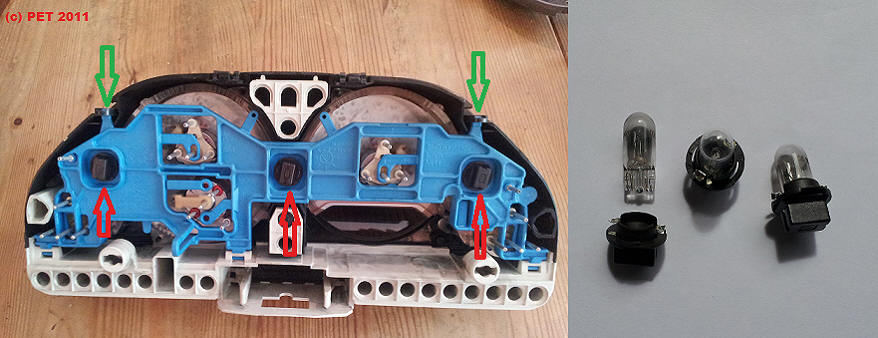 Grund hierfür kann der Ausfall einer der 3 Glassockelbirnen (12 Volt 3 Watt W3W - BMW Teile-Nr 0711 9 905 358) sein